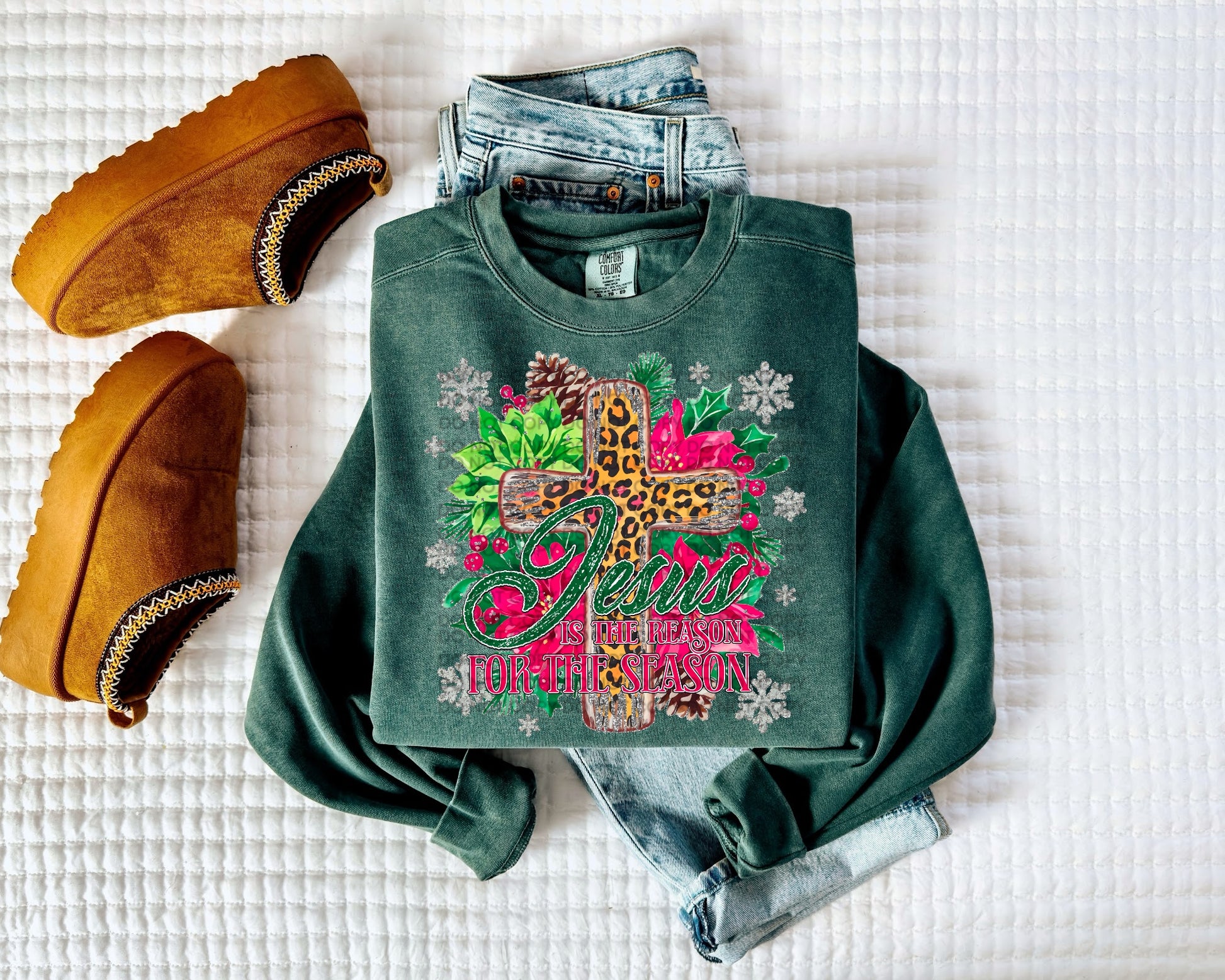 Cross Jesus is the Reason of the Season Comfort Color T-shirt, Bella Canvas Tees, Crew Sweatshirt